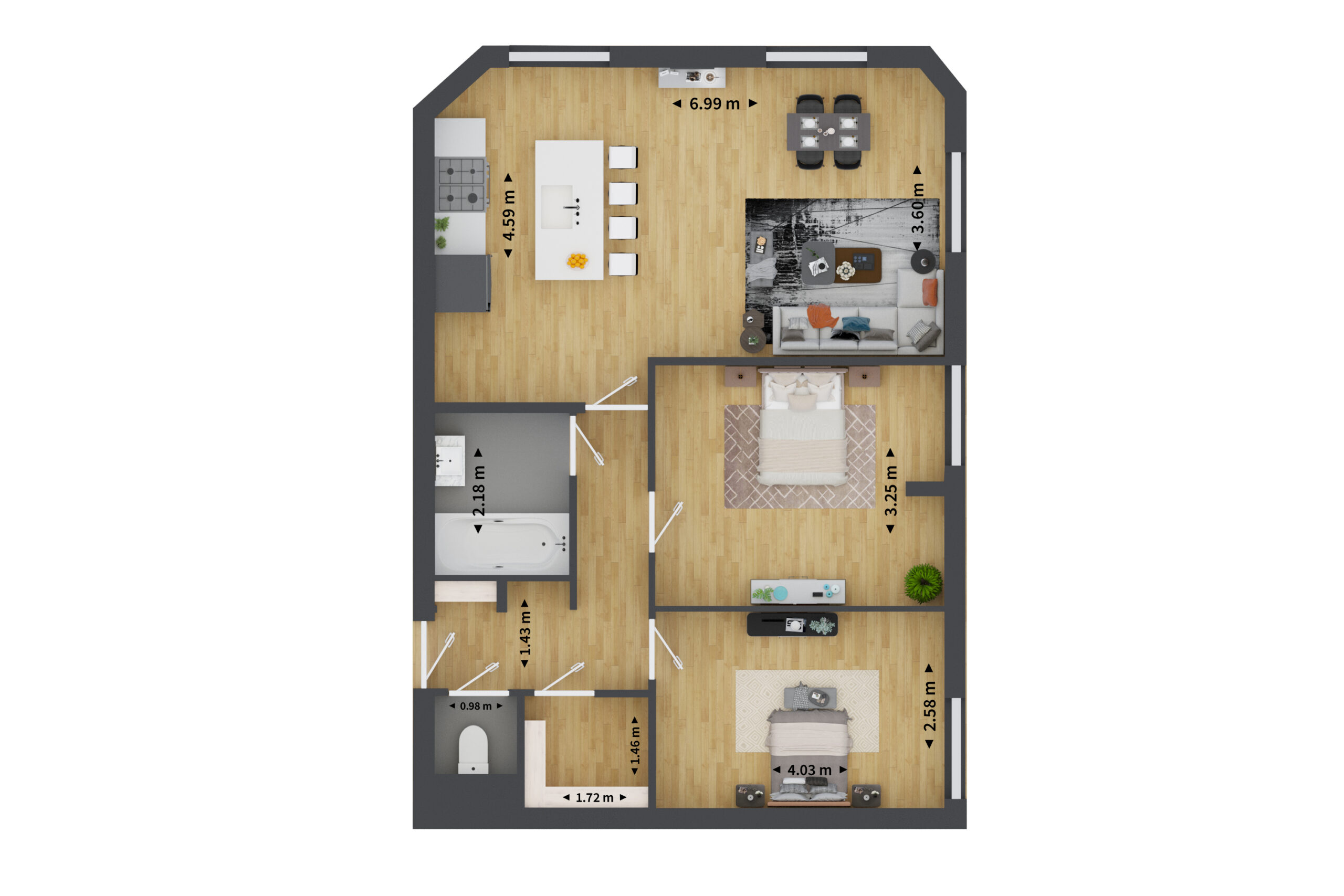 Appartement 7 is gelegen op de eerste verdieping van De Kazerneschool en bevindt zich aan de zij- en achterzijde van het gebouw. Een rustige plek met veel privacy en uitzicht op de luwere zijde van het complex. Dit appartement is ideaal voor wie comfortabel wil wonen in een stijlvolle en onderhoudsarme woning, met een historisch decor als extra bonus.